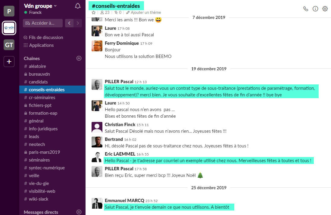 Un atelier, c’est un endroit où l’on bosse ! A la demande des autres adhérents du groupement, un des membres VDN – Franck Pelagatti, co-dirigeant de l’agence digitale SKILZ s’est mis au travail pour préparer un atelier de formation dédié à deux outils digitaux de plus en plus utilisé au sein du réseau : LinkedIn d’une part, et Slack d’autre part. L’atelier a permis aux dirigeants VDN de découvrir un certain nombre de fonctionnalités peu connues du réseau social LinkedIn, et donc de mieux utiliser ce formidable outil B2B. Quant à Slack, ce système de messagerie s’est rapidement imposé au sein du réseau VDN ; restait à en découvrir certaines “finesses” pour encore mieux l’exploiter. Grâce à Slack, les échanges entre dirigeants sont devenus plus simples, plus rapides et toujours aussi conviviaux.